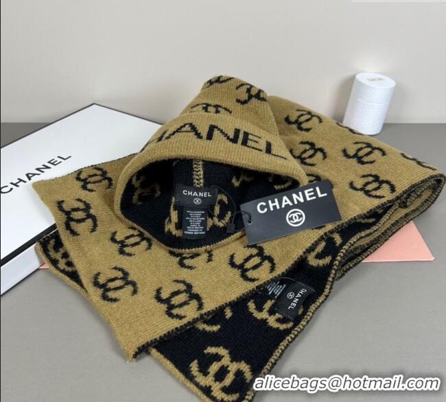 Top Design Chanel CC Allover Hat and Scarf Set CH111108 Green 2025