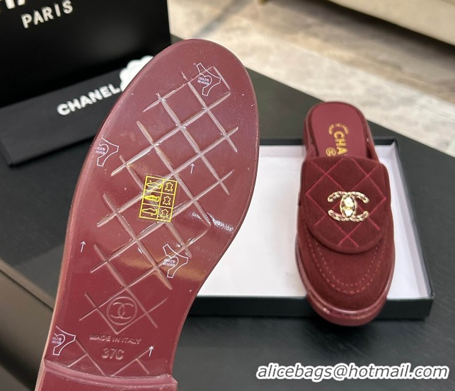 Top Design Chanel Corduroy Flat Mules with CC Foldover G47119 Deep Red 2026