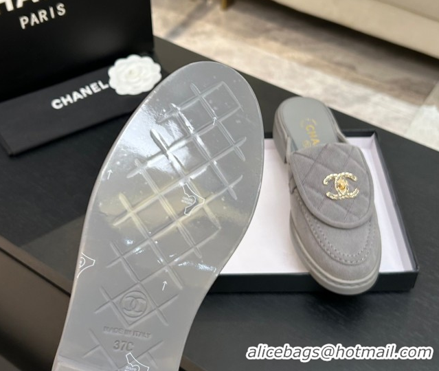 Buy Luxury Chanel Corduroy Flat Mules with CC Foldover G47119 Light Grey 2026