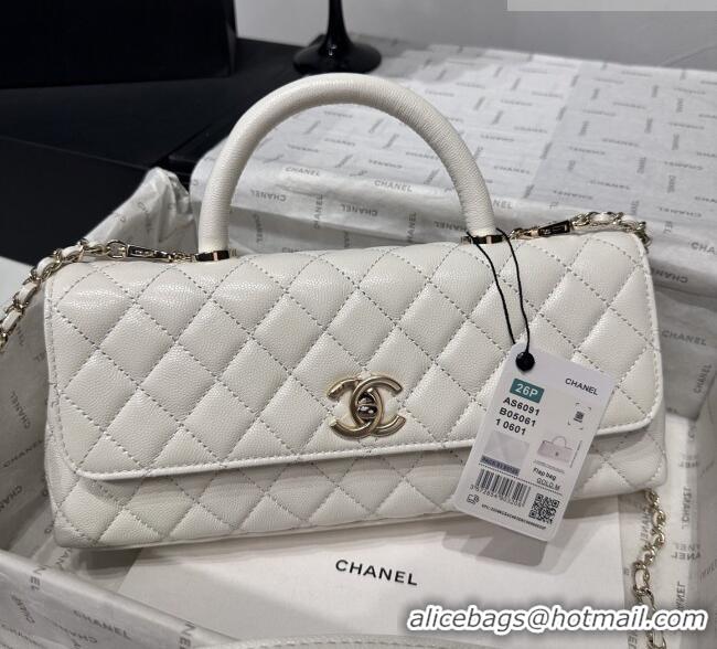 Inexpensive Chanel Grained Calfskin Long Maxi Flap Bag with Top Handle AS6091 White 2026