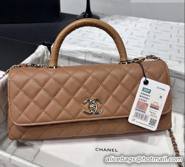 Top Design Chanel Grained Calfskin Long Maxi Flap Bag with Top Handle AS6091 Caramel 2026