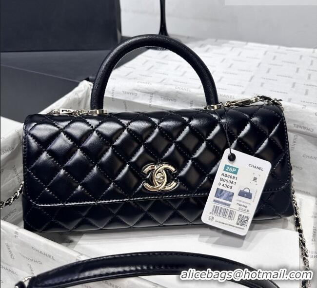 Modern Classic Chanel Waxy Calfskin Long Maxi Flap Bag with Top Handle AS6091 Black 2026