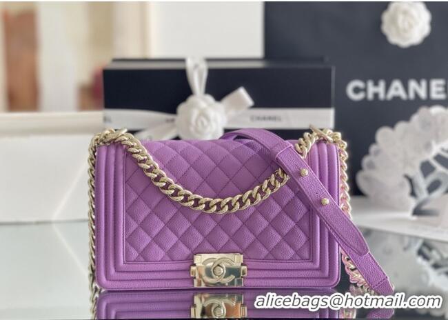 Top Design Chanel Original Big Grained Calfskin Medium Boy Flap Bag AS2005 Purple/Light Gold 2025 Top Quality
