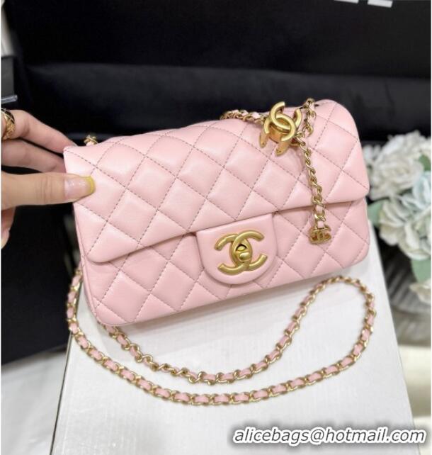 Top Design Chanel Shiny Lambskin Mini Flap Bag with CC Chain AS5759 Pink 2025 Top Quality