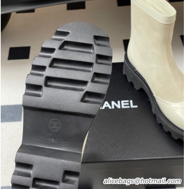 Top Design Chanel Suede and Shiny Calfskin Platform Ankle Boots White 2025 CH110404 1104068