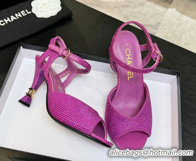 Top Grade Chanel Suede and Strass Heel Sandals 7cm CH030601 Dark Pink 2026