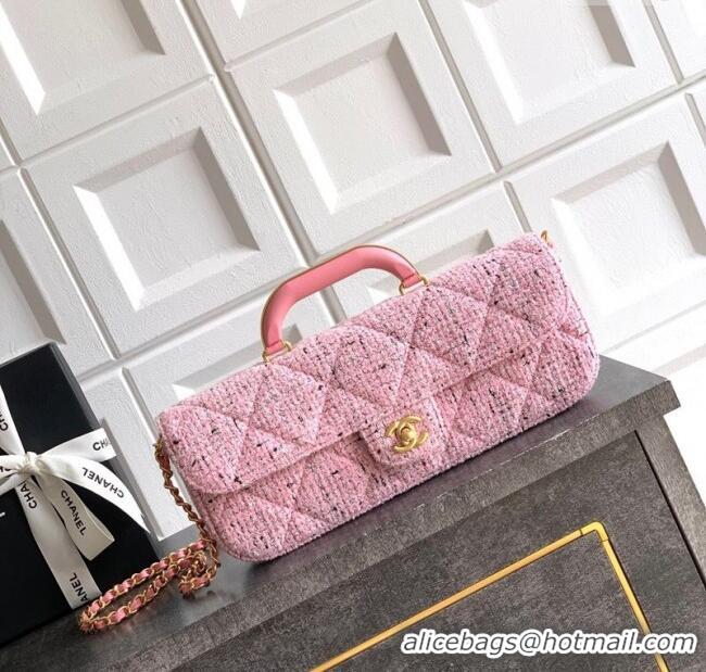 Top Design Chanel Tweed Large Flap Bag with Top Handle AS5807 Pink 2025