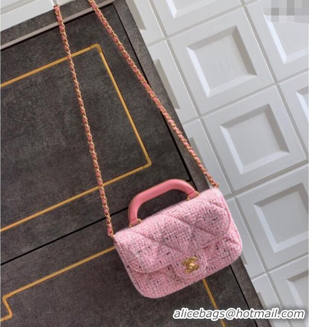 Best Luxury Chanel Tweed Mini Flap Bag with Top Handle AS5805 Pink 2025
