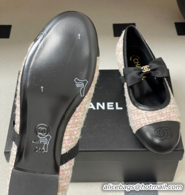 Buy Luxury Chanel Tweed & Leather Ballet Flats with Bow CH122402 Pink/Black 2026