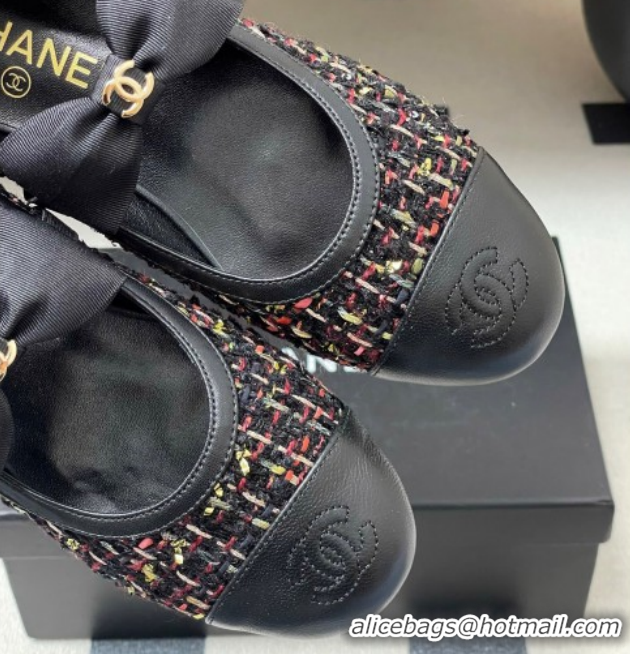 Top Design Chanel Tweed & Leather Ballet Flats with Bow CH122402 Black/Multicolor 2026