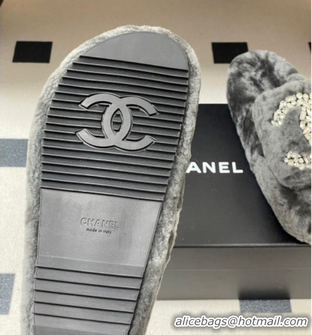 Good Looking Chanel Wool Platform Slides Sandal with Strass CC Grey 2025 CH110305 1103083