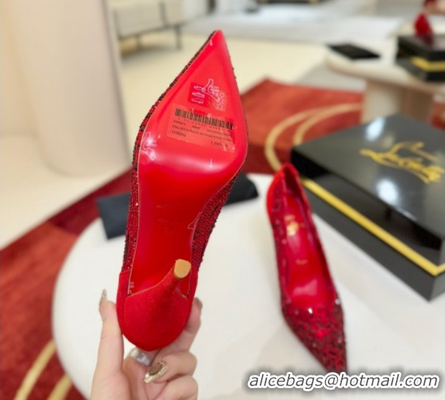 Good Product Christian Louboutin Miss Z Pumps 10cm in Strass and Cut-out Suede 1209104 Red 2026