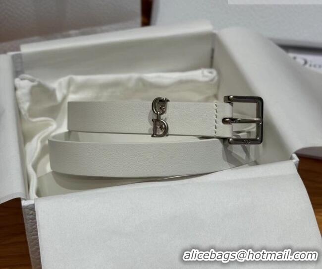 Top Design Dior Saddle Loop Belt 2cm in Smooth Leather with CD Pin Buckle DR031705 White/Silver 2026