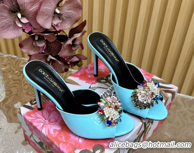 Top Design Dolce & Gabbana Patent Leather Heel Slides Sandal 10cm with Strass DG121104 Light Blue 2026