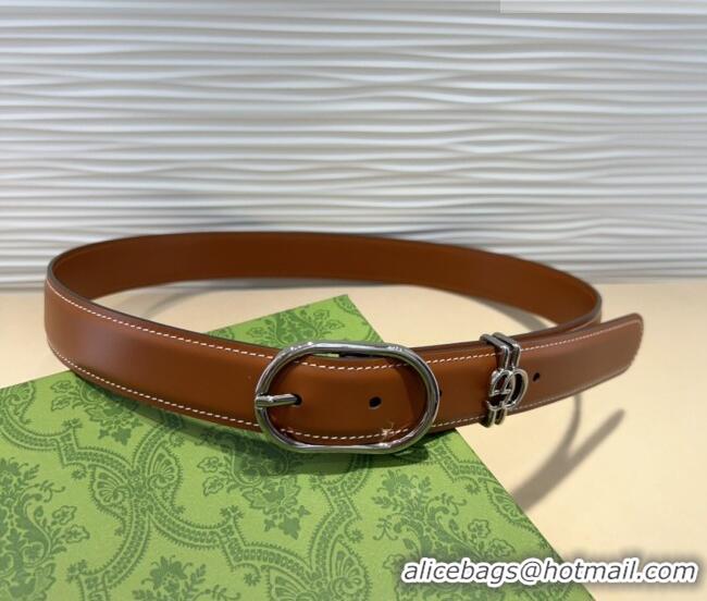 Top Quality Gucci Double G Leather Belt 3cm with Round Pin Buckle 633125 Brown/Silver 2025
