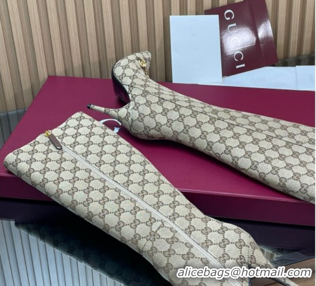 Low Cost Gucci GG Canvas Heel High Boots 10cm with Horsebit 835738 Beige 2026