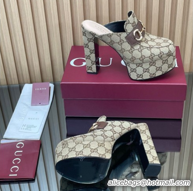 Top Design Gucci GG Canvas Platform Mule 13.5cm with Horsebit 835315 Beige 2025