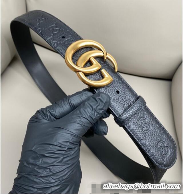 Buy Cheap Gucci GG Embossed Grained Leather Belt 4cm with GG Buckle GG010902 Black/Aged Gold 2025