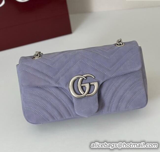 Top Design Gucci GG Marmont medium shoulder bag in Suede 837267 Dusty Blue 2025