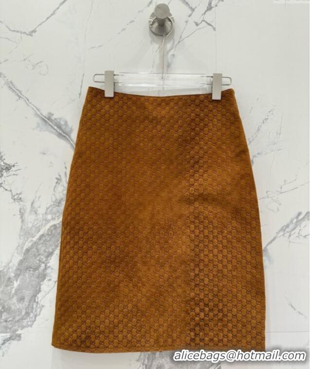 Top Design Gucci GG Suede Leather Skirt G072506 Brown 2025