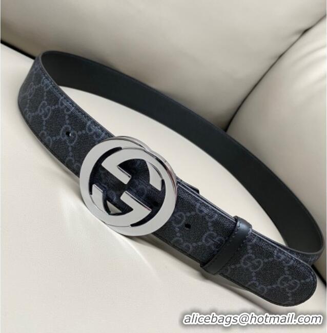 Famous Brand Gucci GG Supreme Canvas Belt 4cm with Silver Interlocking G Buckle GG011002 Black 2025