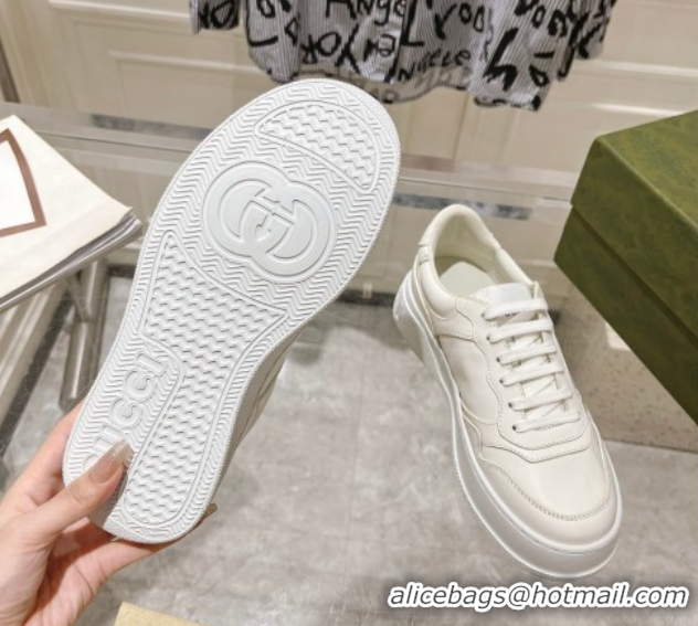 Charming Gucci Leather Heel Platform Slide Sandals 4cm Interlocking G Studs Cream White 403111