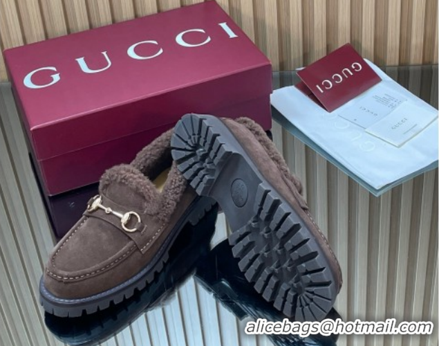 > Shoes Plaza > Gucci Shoes > Luxury Gucci Wool and Suede Loafers with Horsebit Chocolate Brown 1218040 2026