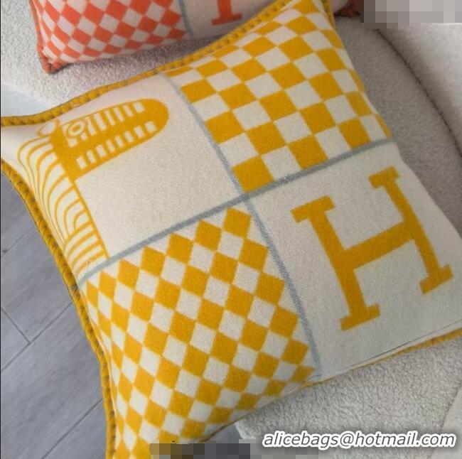 Luxury Cheap Hermes Avalon Animaux Nattes Wool Cashmere Pillow 45x45cm HS091032 Yellow 2025