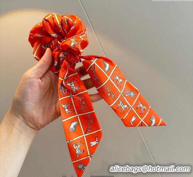 Discount Hermes Horse Twilly Silk Bandeau and Hairring Set 0724 Orange 2025