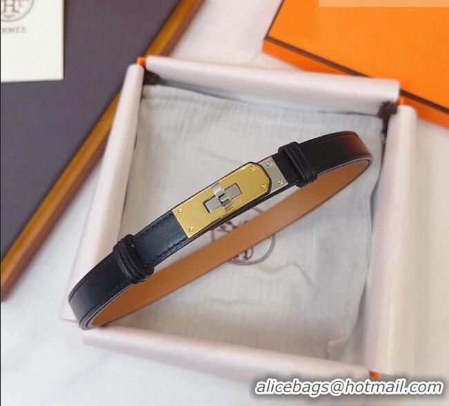 Buy Fashionable Hermes Kelly Duo Belt 1.8cm in Calfskin Leather H102202 Black/Gold/Silver 2024
