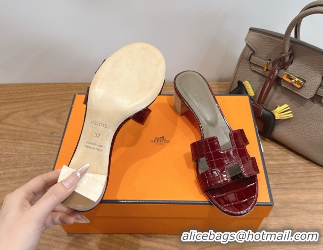 Best Grade Hermes Oasis Classic Heel Slides Sandal 4.5cm in Crocodile Embossed Leather Burgundy 2026 0304042