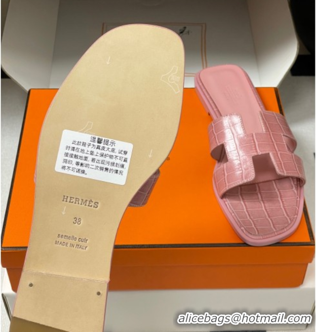 Your Position: Home > Shoes Plaza > Hermes Shoes > Top Design Hermes Oran Classic Flat Slides Sandal in Stone Embossed Calfskin Pink 2025 H081803