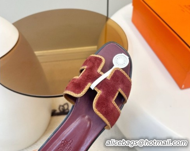 Most Popular Hermes Oran Classic Flat Slides Sandal in Suede with Braided Trim Burgundy 0304091 2026
