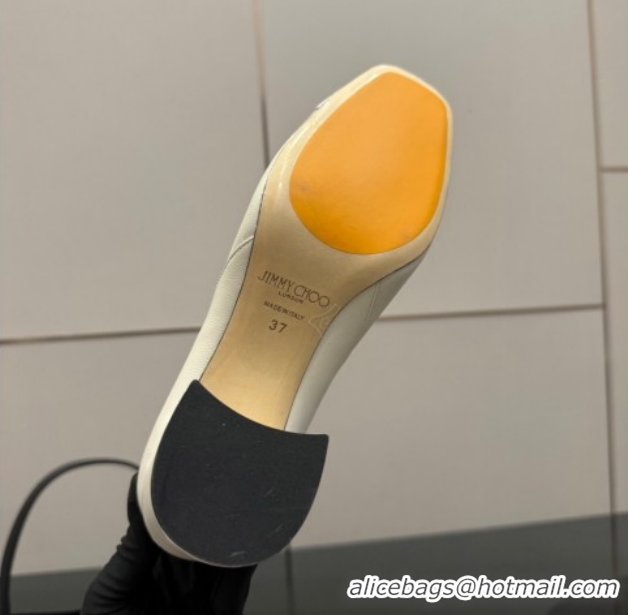 Best Price Jimmy Choo Jenson Pumps 6cm in Calfskin and Patent Leather with Pearls Bow White 1210069