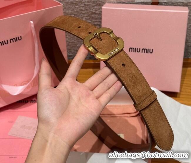 Reasonable Price Miu Miu Calfskin Belt 3cm with Logo Band Buckle MM102201 Brown/Gold 2024