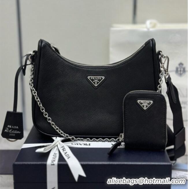 Top Design Prada Re-Edition 2005 Saffiano leather bag 1BH204 Black/Silver 2026