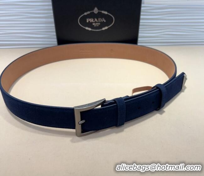 Top Design Prada Suede Belt 3.5cm with Silver Pin Buckle 1127 Dark Blue 2024