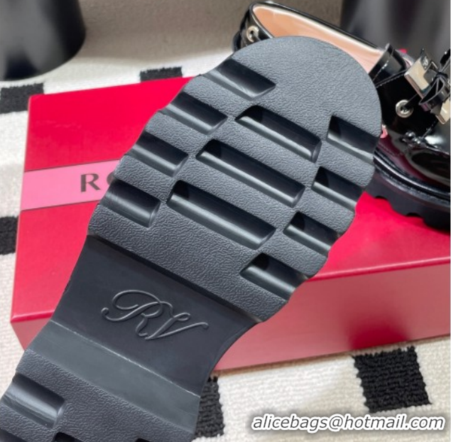 Top Design Roger Vivier Viv' Rangers Truck Boat Shoes 4.5cm in Shiny Leather with Metal Buckle RV121208 Black 2026
