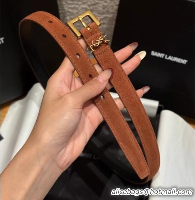 > Belts Mall > Yves Saint Laurent Belts > Famous Brand Saint Laurent Cassandre Belt 2cm in Suede and Leather YSL26010401 Dark Brown/Gold 2025