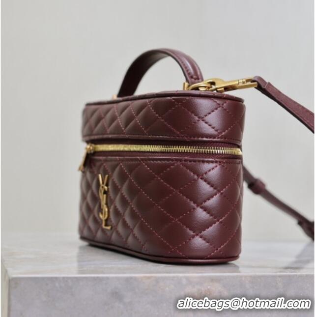 Top Design Saint Laurent Gaby Vanity Bag in Quilted Lambskin Leather 766731 Burgundy 2025