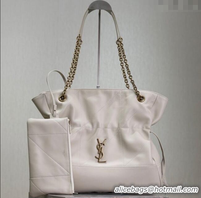 Famous Brand Saint Laurent Jamie Shopping Bag in Lambskin 809824 White 2025