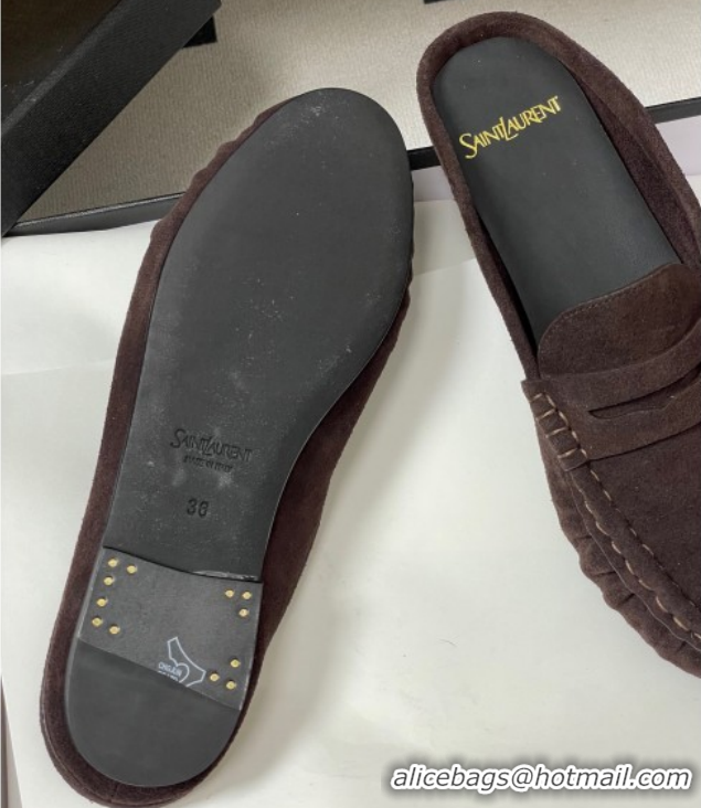 Top Design Saint Laurent Le Loafer Mules in Suede Dark Brown 1215026