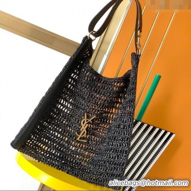 Top Design Saint Laurent Oxalis Shoulder Bag in Raffia Straw Crochet Net 773984 Black 2025