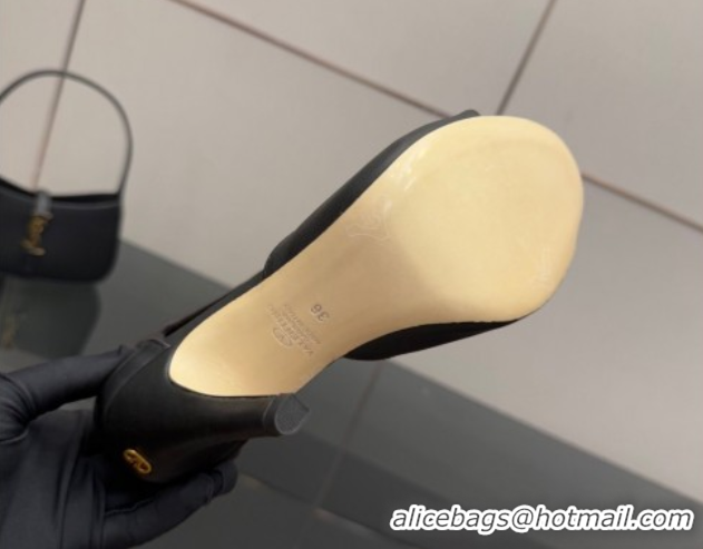 Good Quality Valentino VLogo PVC Heel Slide Sandals 8cm Black/Gunmetal 324015