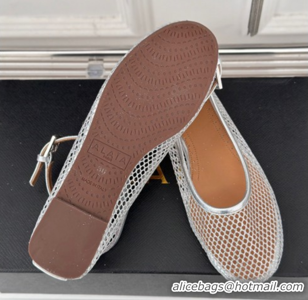 Top Grade Alaia Ballet Flats in Fishnet and Ankle Strap Silver-Tone 1112005