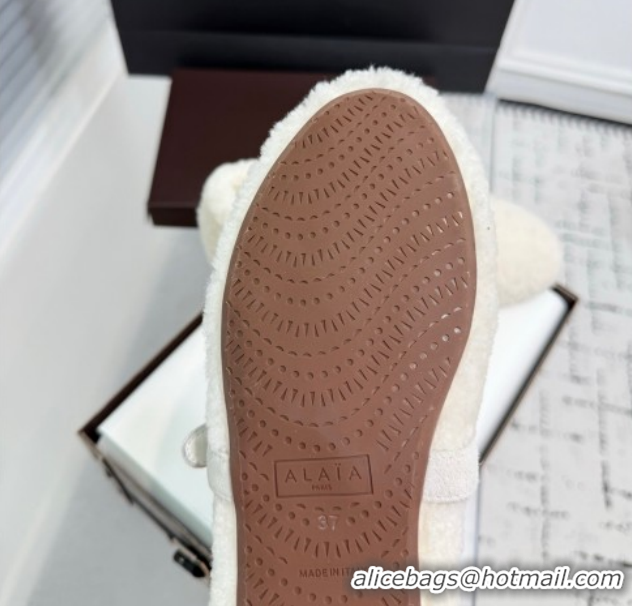 Top Grade Alaia Ballet Flats in Shearling Wool White 2026 AL120901 1209003