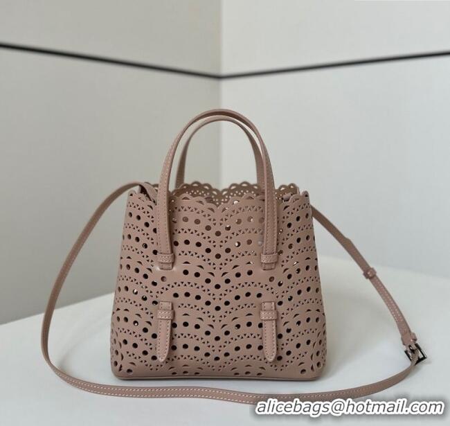 Luxury Cheap Alaia Mina Tote Bag in Vienne Openwork Leather 8819S Pink 2025