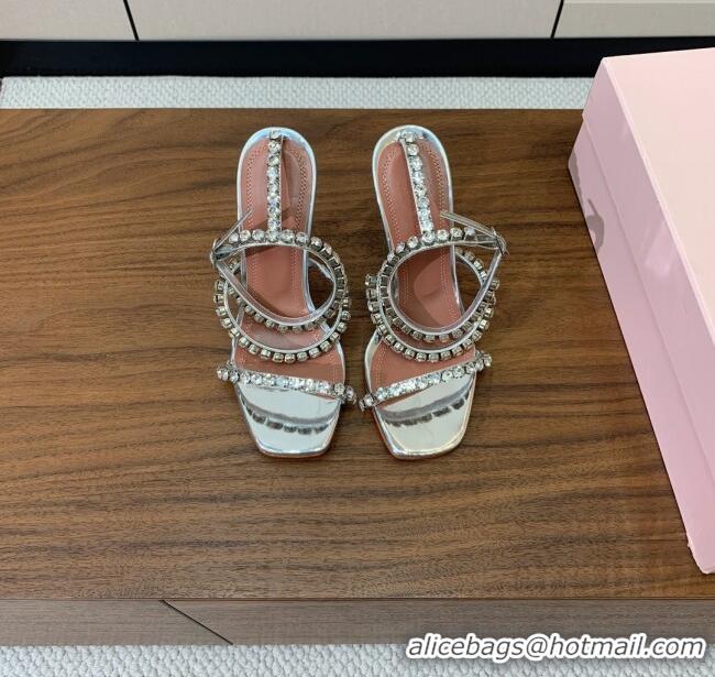 Pretty Style Amina Muaddi Gigi Sandal 95cm A1114 Silver Mirror/White Crystals 2025