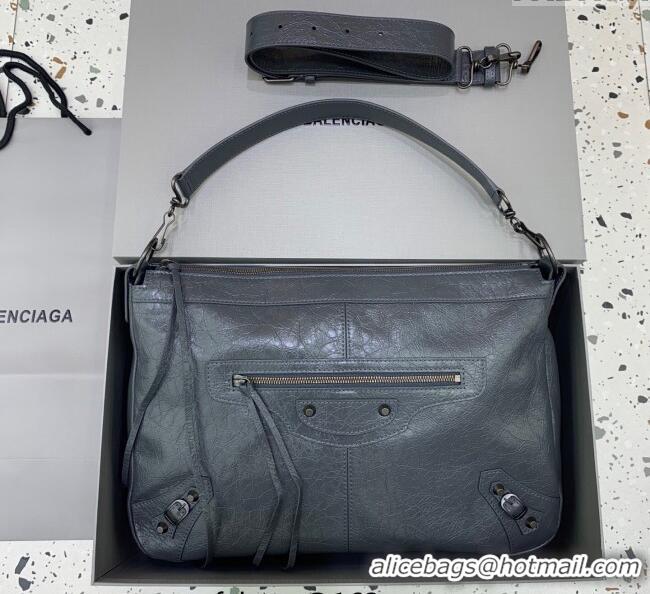 Market Sells Balenciaga Le City Moto Medium Shoulder Bag in Arena Storico Lambskin 92601 Grey 2025