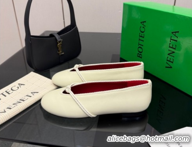 > Shoes Plaza > Bottega Veneta Shoes > Top Grade Bottega Veneta Rosa Mary-Jane Ballerinas Flat in Lambskin Leather with Knit Strap White 1206059 2026